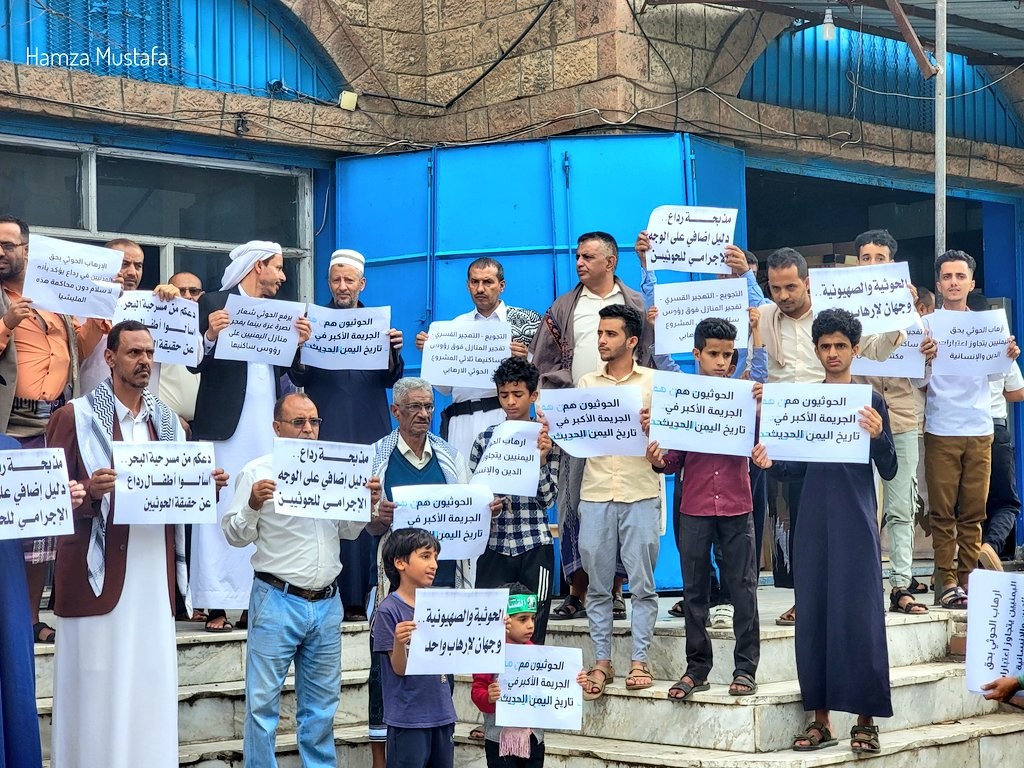 وقفة احتجاجية بمدينة تعز نددت بجريمة الحوثيين في رداع البيضاء