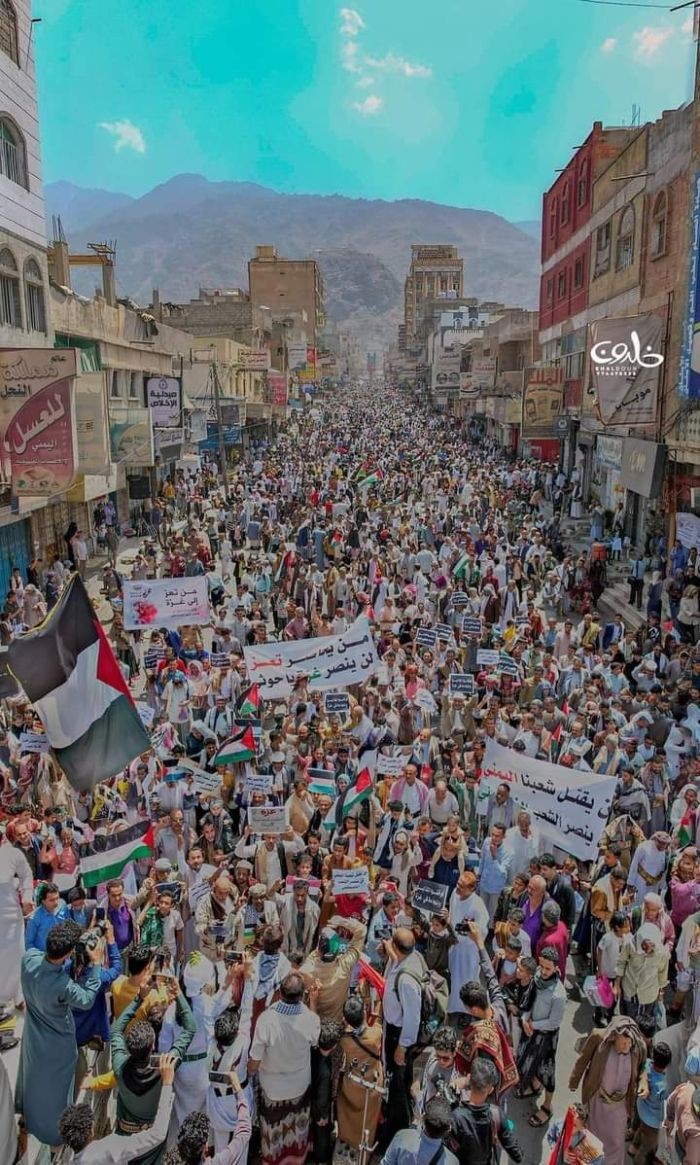 نظمت جماهير مدينة تعز، اليوم الجمعة، مسيرة حاشدة للتعبير عن تضامنها مع الشعب الفلسطيني في قطاع غزة، الذي يتعرض لعدوان إسرائيلي مستمر، وللمطالبة برفع الحصار الذي
