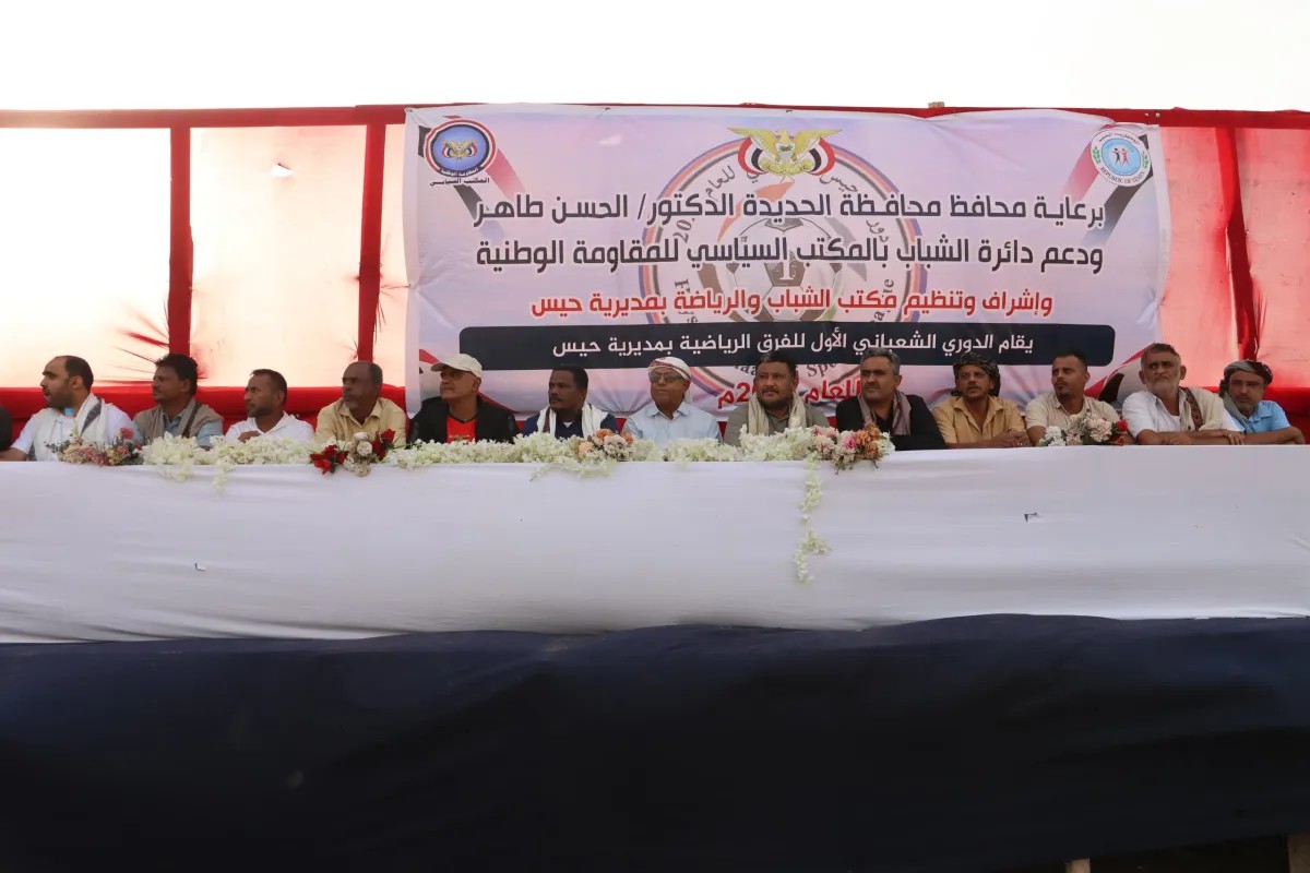 انطلقت، السبت، منافسات دوري "الشعباني" لكرة القدم في مدينة حيس بمحافظة الحديدة، بمشاركة 12 فريقًا موزعة على ثلاث مجموعات، تحت رعاية محافظ الحديدة الدكتور الحسن طاهر،