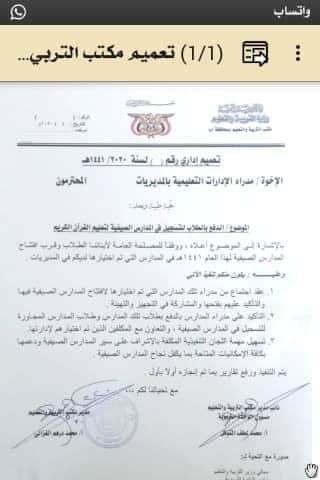 وثيقة.. مشرف التربية الحوثي في إب يفرض على طلاب المحافظة الالتحاق بدورات طائفية غير أبه بتفشي "كورونا"