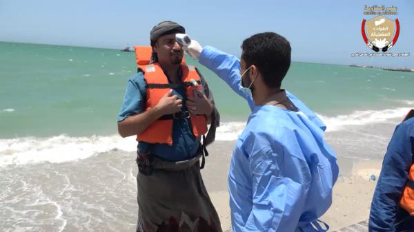 ضباط الإرتباط في البعثة الأممية يخضعون لإختبار كورونا لحظة وصولهم المخا - (فيديو)