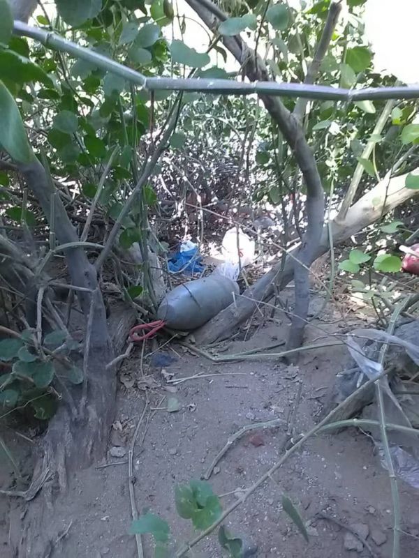 لم تسلم حتى الأشجار من زراعة الموت الذي نشره الحوثي في كل مكان مر به. مقذوف بصاعق زرعته مليشيا الحوثي فى اسفل شجرة في المحيط