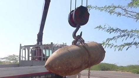 تمكنت الفرق الهندسية التابعة لمشروع "مسام"، يوم السبت، 20مارس/آذار 2021 من انتزاع صاروخ يزن 500 كجم من مخلفات مليشيا الحوثي، في مديرية الخوخة جنوبي الحديدة.