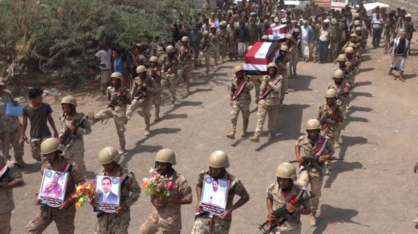 فيما تقدم المسير خلفهما عدد من قادة ألوية حراس الجمهورية، لُفَ الجثمانان الطاهران بالراية الجمهورية محمولين على أكتاف رفقاء المقاومة والقضية الوطنية في تشييع مهيب لمقاتلين