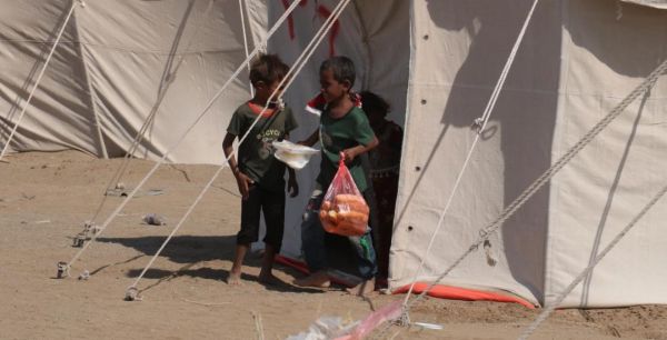 بجهود إنسانية المقاومة الوطنية: تسكين عشرات الأسر النازحة من الحديدة في مخيم الوعرة (صور)