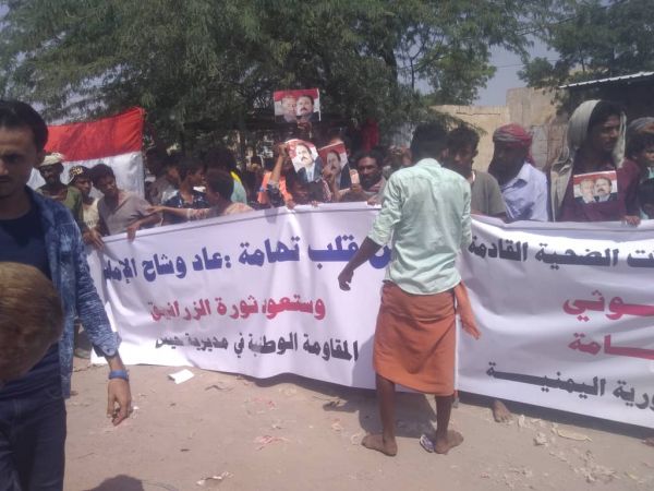 نظم شباب المقاومة الوطنية صبيحة الذكرى الـ58 لثورة 26سبتمبر وقفة احتجاجية بمديرية حيس تنديدا بالمذبحة الحوثية التي أودت بحياة تسعة تهاميين وتضامنا مع عائلات ضحايا المذبحة.