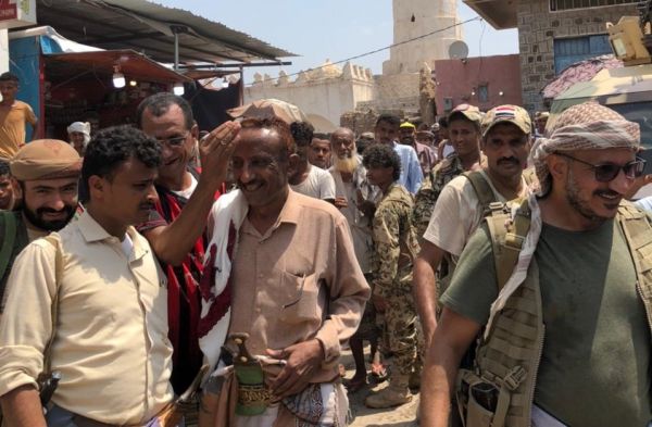 تبادل قائد المقاومة الوطنية رئيس المكتب السياسي الأحاديث مع المواطنين والأهالي في سوق موزع الشهير وجال على معالمها التاريخية وتفقد حال وظروف جامعها التاريخي الكبير والتقى