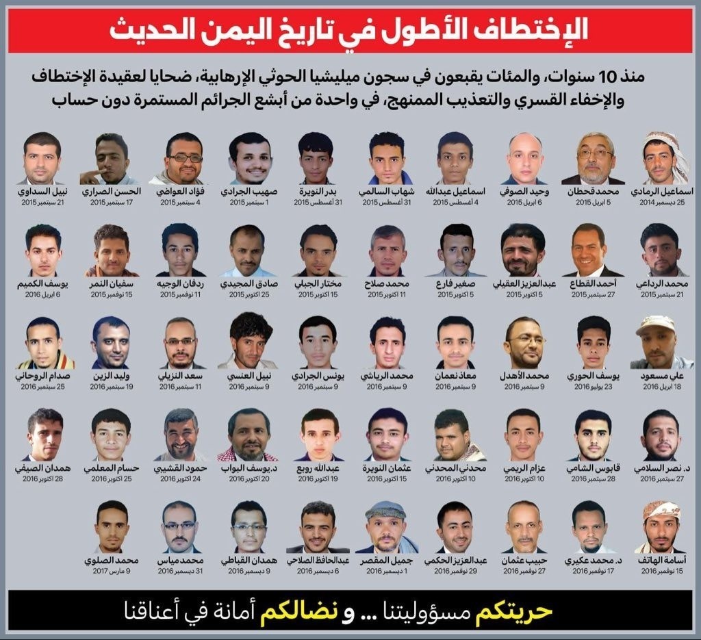 اتهمت الشبكة اليمنية للحقوق والحريات جماعة الحوثي بارتكاب واحدة من أبشع الجرائم ضد المدنيين، تمثلت في الاختطاف والإخفاء القسري والتعذيب الممنهج لمئات الأشخاص على مدى عشر