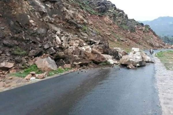 انهيارات صخرية ناتجة عن الأمطار في إب وأخرى تقطع خط المحويت صنعاء