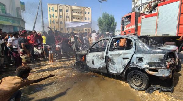 اندلع حريق هائل، ظهر الجمعة 23 سبتمبر/ أيلول 2022، في سيارة مدنية من نوع تاكس وسط مدينة الغيضة بمحافظة المهرة. وقال مراسل الساحل الغربي إن