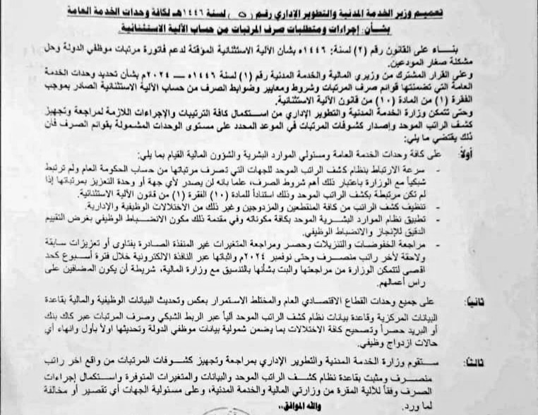 أعلنت سلطة الأمر الواقع التابعة لجماعة الحوثي في صنعاء عن صرف نصف راتب لموظفي القطاع الحكومي ابتداءً من يناير 2025، وفقاً لتوجيهات صارمة أثارت جدلاً واسعاً.