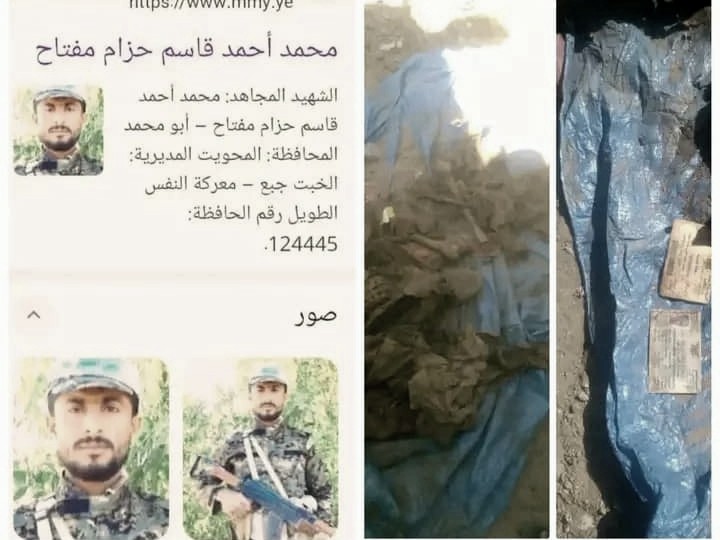 عثر مواطنون في مدينة المخا، الأحد، على رفات أحد عناصر مليشيا الحوثي أثناء تمديد شبكة مياه الشرب إلى مركز المديرية الكبرى في الساحل الغربي. وأوضح
