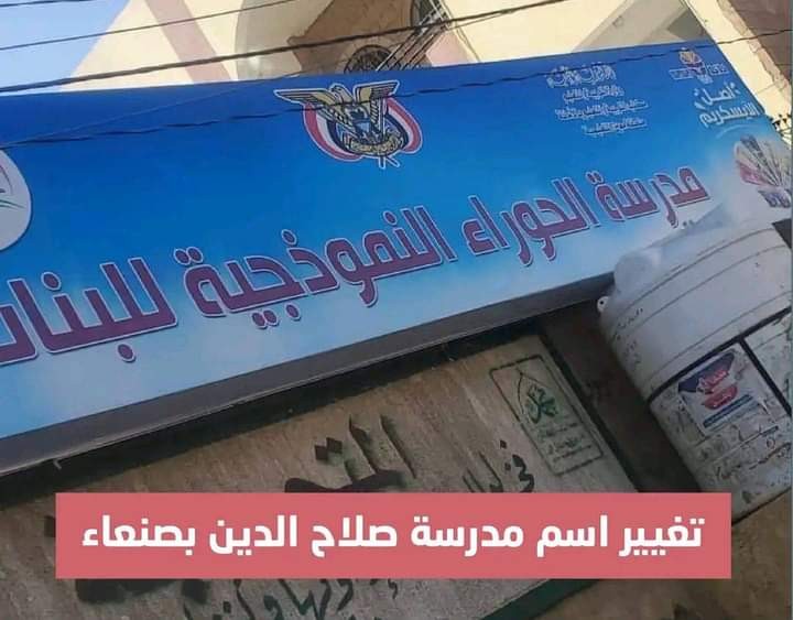 في خطوة جديدة تعكس سعي مليشيا الحوثي لفرض طابعها الطائفي، غيرت اسم مدرسة صلاح الدين الأيوبي في منطقة معين بالعاصمة المختطفة صنعاء. وحسب مصادر