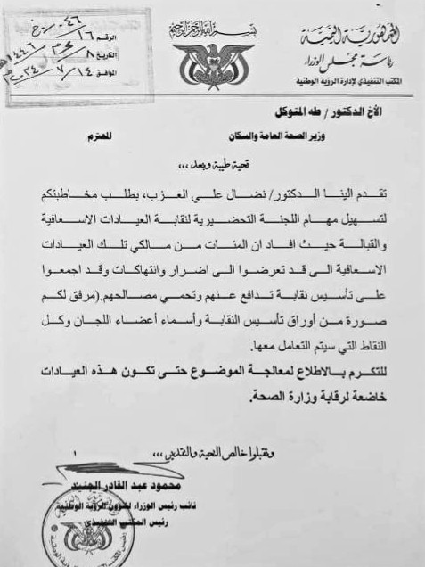 دفعت حملات التعسف والجباية الحوثية منتسبي المهن الطبية المساعِدة إلى السعي لإشهار كيان نقابي تحت اسم "نقابة العيادات الإسعافية والقبالة"، للدفاع عن حقوق العاملين في هذا