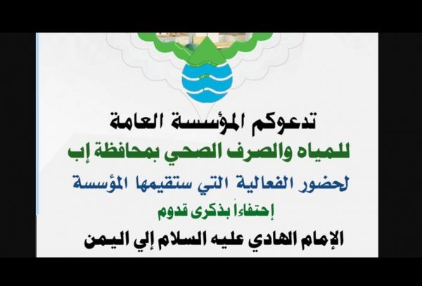 حمل إعلان حوثي باسم مؤسسة المياه والصرف الصحي بإب دعوة لحضور احتفائية بمناسبة قدوم الغازي الرسي "الهادي".