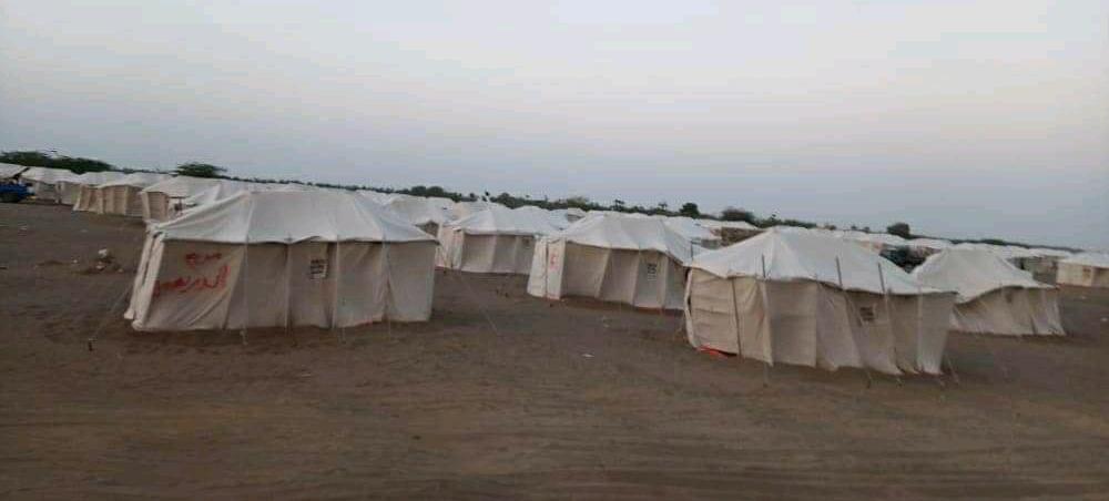 بجهود إنسانية المقاومة الوطنية: تسكين عشرات الأسر النازحة من الحديدة في مخيم الوعرة (صور)