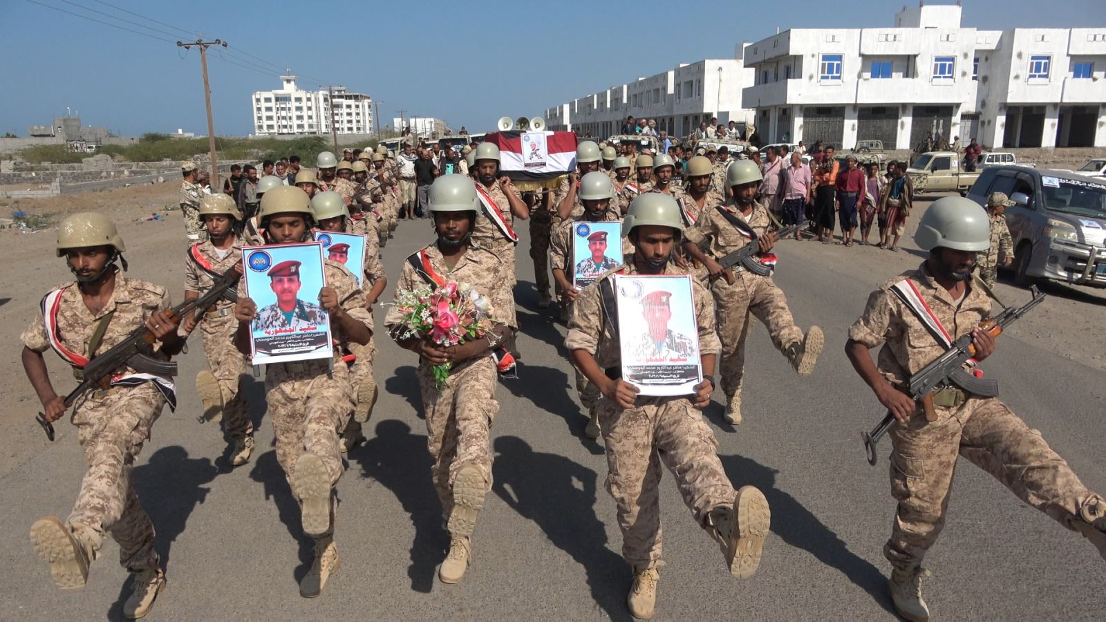 وجدد المشيعون العهد لله والوطن بالمضي في النضال الوطني على درب الشهداء الأبرار تحت قيادة العميد الركن طارق محمد عبدالله صالح، قائد المقاومة الوطنية رئيس المكتب السياسي.