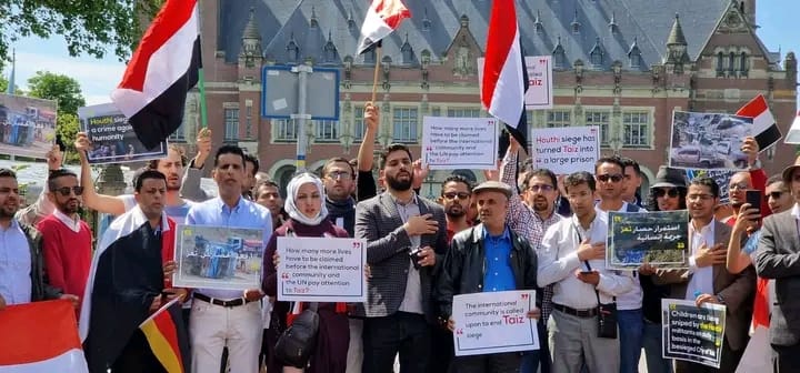 #ارفعوا_الحصار_عن_تعز : تظاهرة وحملة إليكترونية.. وفعالية يمنية أمام محكمة العدل الدولية