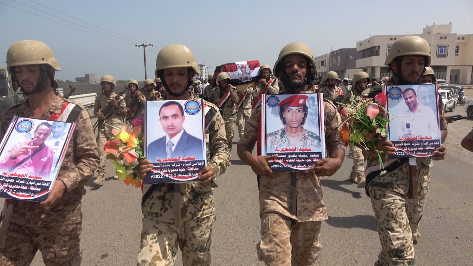 فيما تقدم المسير خلفهما عدد من قادة ألوية حراس الجمهورية، لُفَ الجثمانان الطاهران بالراية الجمهورية محمولين على أكتاف رفقاء المقاومة والقضية الوطنية في تشييع مهيب لمقاتلين جمهوريين، الإعلامي شرف شرف محمود الشمري، والجندي يوسف منصور الكحيل، إلى فردوس شهداء الحراس في مدينة المخا، غربي تعز بالساحل الغربي لليمن، يوم الاثنين 6 يونيو/ حزيران 2022م.