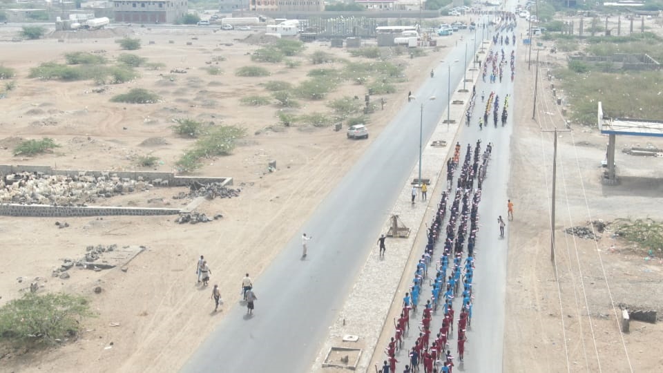 ورسم المشاركون لوحة كرنفالية وطنية من أمام ميناء المخا وصولًا إلى ساحة مدرسة الزهراء، حيث أُقيم حفل خطابي احتفاء بنجاح فعاليات المخيمات والمراكز الصيفية.