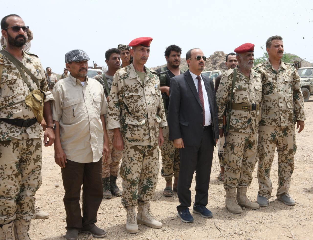 وطاف معالي الوزير مع رئيس عمليات المقاومة الوطنية العميد الركن عبدالرحمن نعمان، وقائد محور البرح العميد الركن حسن لبوزة، وقائد محور حيس العميد الركن بهيجي الرمادي، وقائد اللواء الثاني حراس الجمهورية العميد نعمان الفاطمي، وعدد من القيادات العسكرية أمام وحدات رمزية من اللواء الثاني حراس اصطفت لاستقباله.