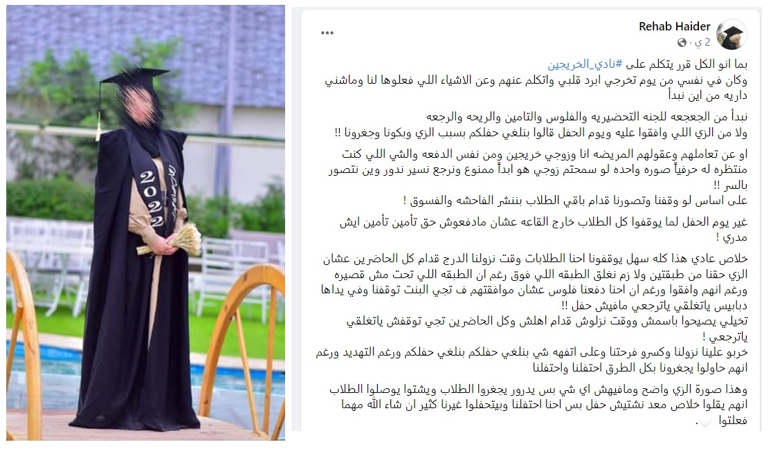 * النص اقتباس حرفي عن حساب الكاتبة/ الخريجية - فيسبوك)