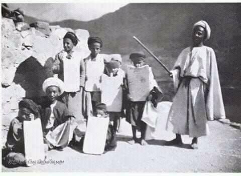 ويضيف السنيدار عن طبيعة التعليم في عهد الإمام يحيى، في القرن العشرين: "..أمَّا المعلامةُ أو المدرسَة، فكانت عبارة عن مكان مُظلم لا توجد فيه نافذة، وإذا وجدت فواحدة فقط، وليس فيها فراش ولا سُبورة ولا مقاعد؛ بل يقعدون على التراب، والمعلم على دكَّة، بين يديه جملة عصي والسَّوط والفلكة، والأولاد يكتبون دروسَهم على الألواح الخشبيَّة، والمداد عبارة عن حِجارة بيضاء ليِّنة، يبلُّونها في الماء، ويستعملونها كمداد أبيض على اللوح الذي صُبغ بمادة سَوداء.. ولم يتطور التعليمُ إلا بعد دُخول الأتراك، وفتحهم للمدارس، وكانوا يسممونها "المكتب" وهِي تعد بالأصَابع، وقَدْ شُنَّت ضدها الدعاياتُ، ولم يُدخِل أهالي صَنعاء أولادَهم إلى هَذِه المدارس إلا بعدَ حين..". الطريق إلى الحرية، سابق، 11
