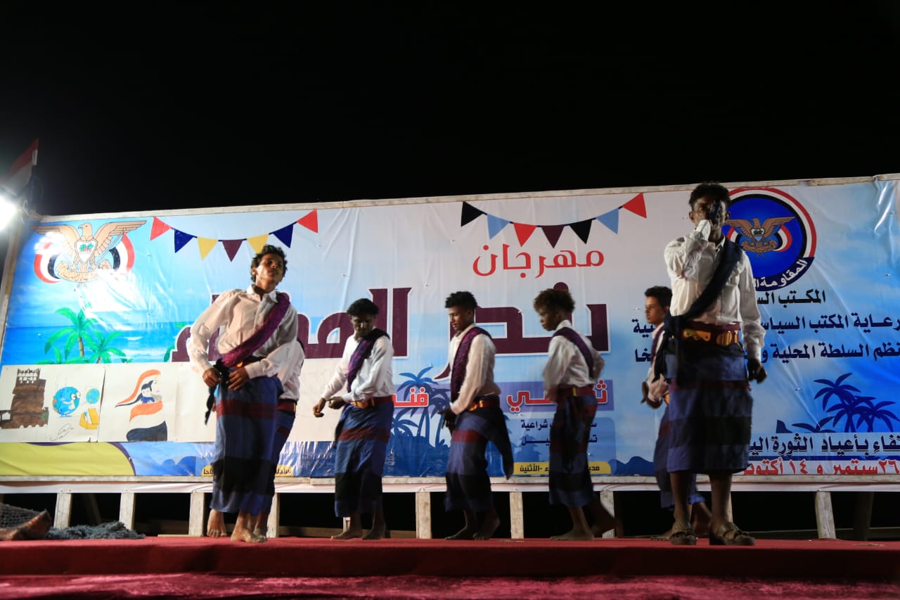 وتوالت اللوحات مجسدة عظمة المناسبة "أعياد الثورة اليمنية"، بما لها من معانٍ جليلة وعظيمة بحجم هذا الوطن اليمني الكبير، في وجدان أبناء المخا وكل يمني حر.