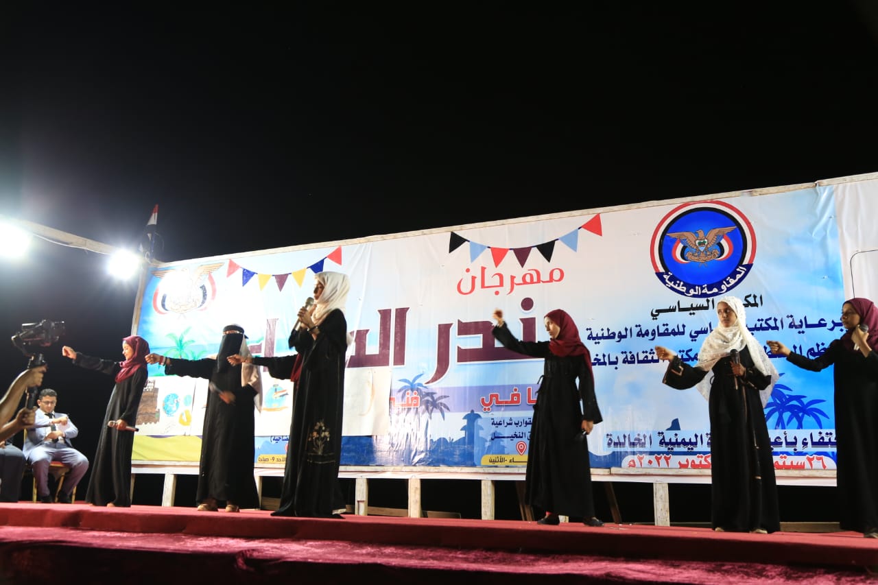 توجت الليلة الحافلة والطويلة مهرجان بندر المخا، بحضور أمين عام المكتب السياسي للمقاومة الوطنية عبدالوهاب العامر، وعدد من أعضاء الكتلة البرلمانية للمكتب السياسي وقيادة السلطة المحلية بالمديرية، في ختام مهرجان تنوعت فقراته على مدى يومين، برعاية سياسي المقاومة الوطنية؛ احتفاء بأعياد الثورة اليمنية الخالدة 26 سبتمبر و14 أكتوبر المجيدتين.