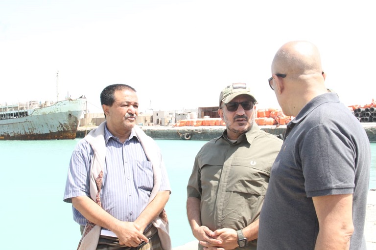 واستمع من مدير الميناء عبدالملك الشرعبي، إلى شرح موجز عن النشاط الحالي للميناء، ومشروع تطويره وتأهيله خلال الفترة القادمة، وسير العمل الجاري في تجهيز الحفار لتعميق القناة الملاحية وحوض الاستدارة، بما يتناسب ومعايير الملاحة في الموانئ الدولية.