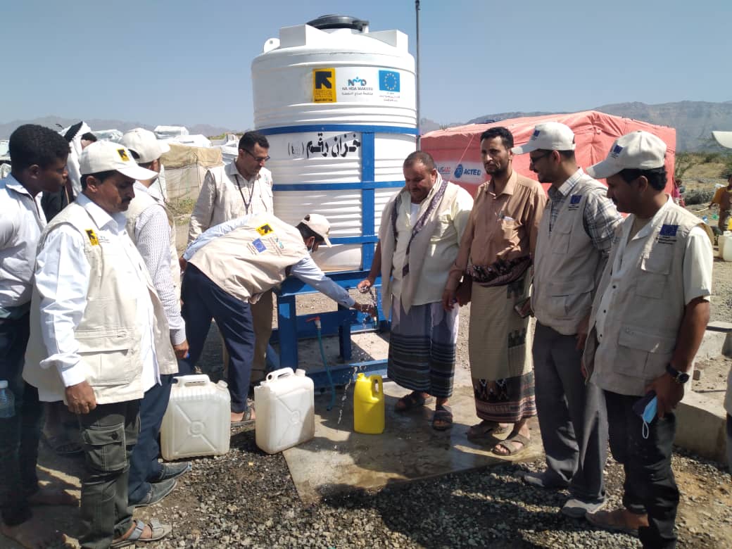 مضيفا بأن تنفيذ المشروع بالشراكة مع لجنة الإاقاذ الدولية IRC وبتمويل من الاتحاد الأوروبي للحماية المدنية والمساعدات الإنسانية، يشمل توريد وتركيب ست نقاط توزيع مياه جديدة تم استحداثها في مواقع التجمع المستهدفة وست نقاط اخرى تم إعادة تأهيلها ونقطتي توزيع مياه يتم توريد المياه اليها بشكل يومي، بالاضافة إلى توريد وتركيب 14 حمام مؤقت طارئ جديد و51 حمام مؤقت طارئ تم إعادة تأهيلها في مواقع تجمع النازحين السبعة المستهدفة في مديرية قعطبة..