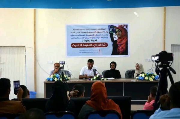 وأقام زملاء رشا الحرازي والصحفي محمود العتمي بالشراكة مع قسم الإعلام بكلية الآداب في جامعة تعز ندوة حقوقية بعنوان "رشا الحرازي.. الحقيقة لا تموت" وذلك في الذكرى الأولى لاغتيال أول شهيدة صحفية في اليمن وإصابة زوجها محمود العتمي بعبوة ناسفة.