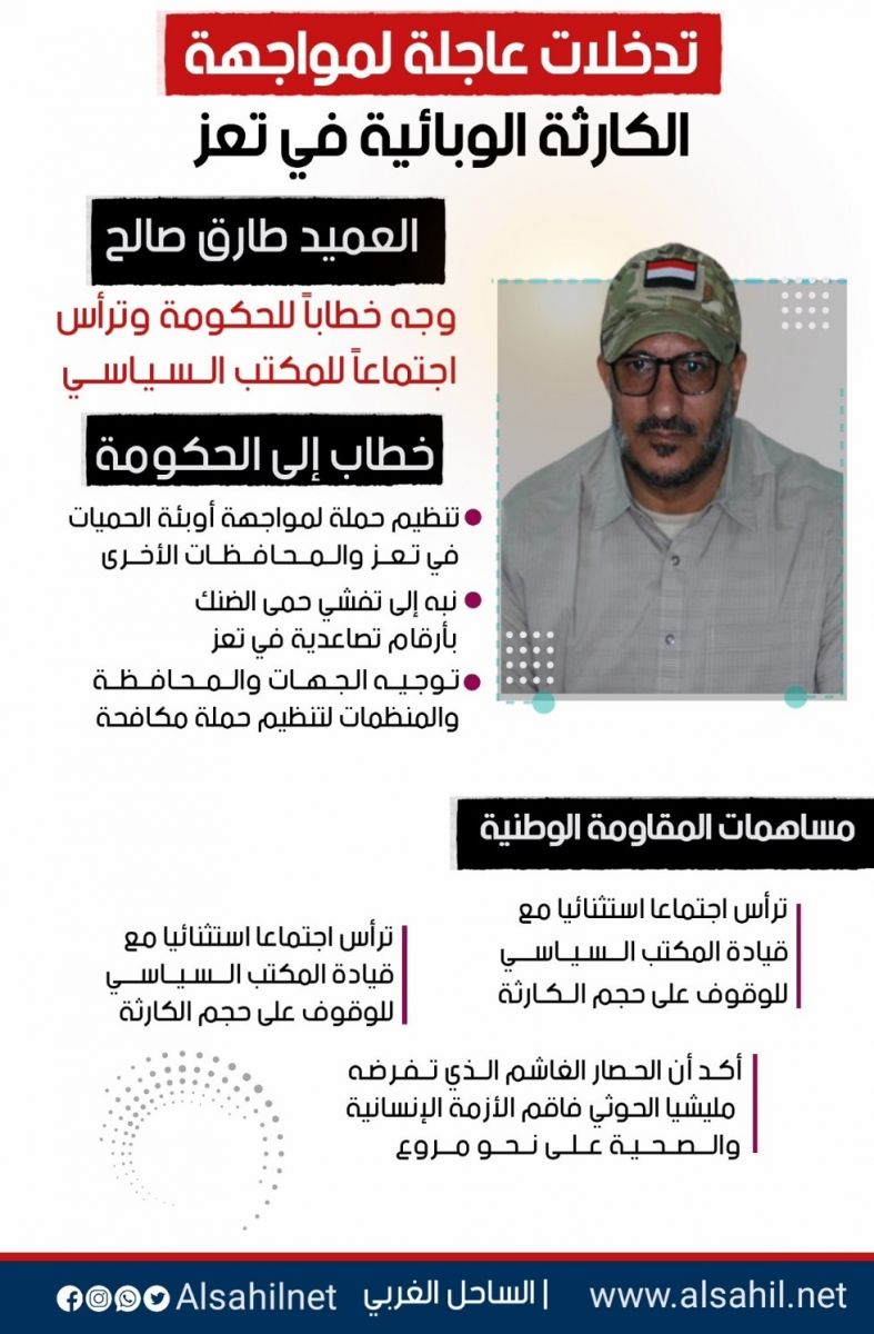 - توجيهات العميد طارق قضت بتدخلات عاجلة في تعز لمواجهة الكارثة الوبائية