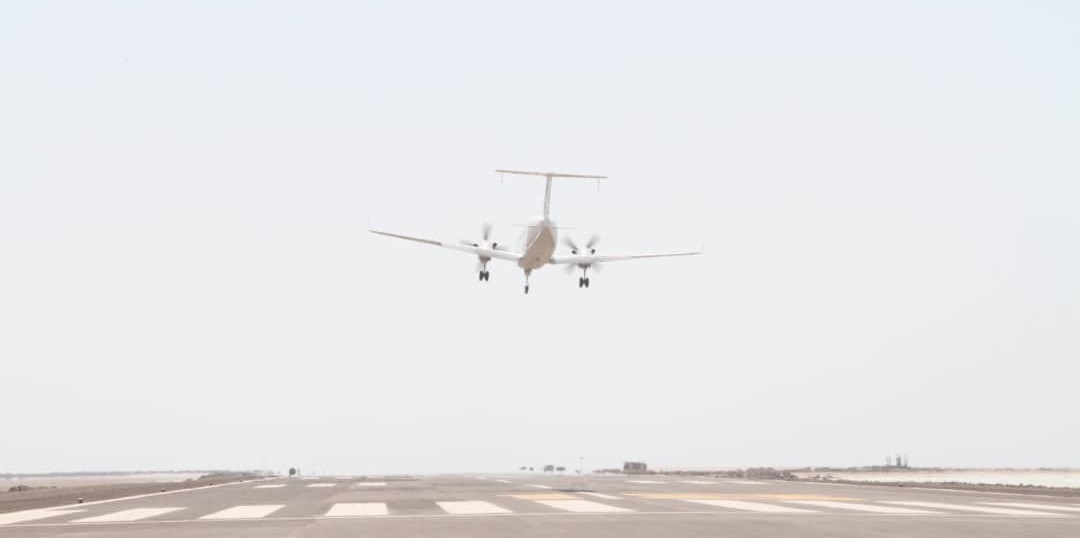 هبطت أول رحلة جوية لمنظمة عالمية ودولية على مدرج مطار المخا الدولي، الخميس 24 نوفمبر/ تشرين الثاني 2022، وتزامنًا دشن العميد طارق صالح أعمال المرحلة الثانية من الإنشاءات في المطار.