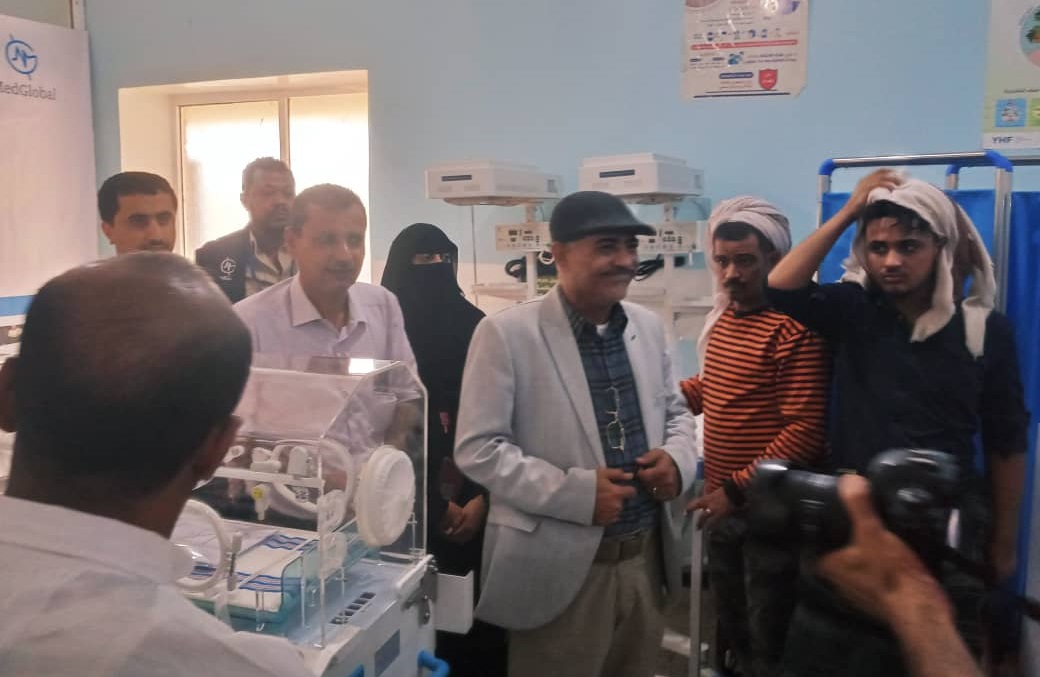 وخلال التدشين، استمع الدكتور المسعودي ومن معه، من قبل ممثلي منظمة ميد جلوبال الأمريكية ومدير مستشفى حيس الريفي الدكتورة نسرين محيي الدين، إلى شرح عن المعدات والأجهزة الطبية والحديثة المتنوعة المقدمة ضمن مشروع المساعدة الطارئة للفئات السكانية في عدن وتعز والحديدة والممول من (LDS).
