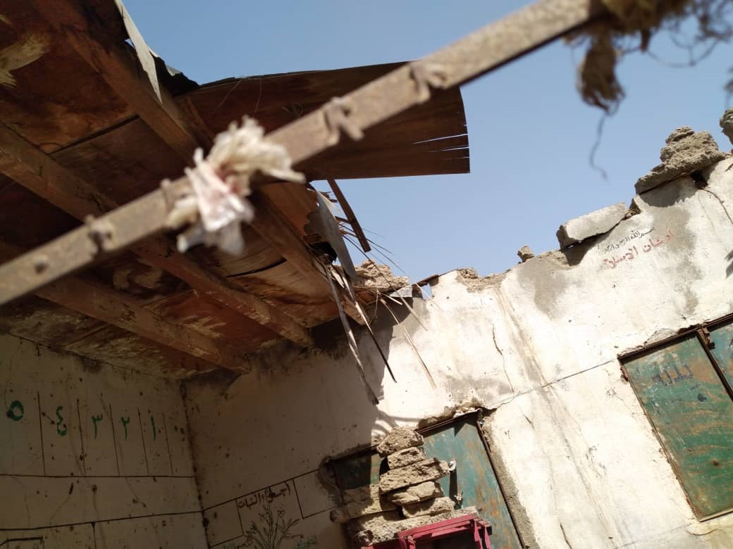 مدرسة حفصة الأساسية في مركز مدينة حيس كان لها نصيب من قذائف مليشيات الحوثي الإرهابية قبل تحرير وتأمين كامل مديرية حيس.