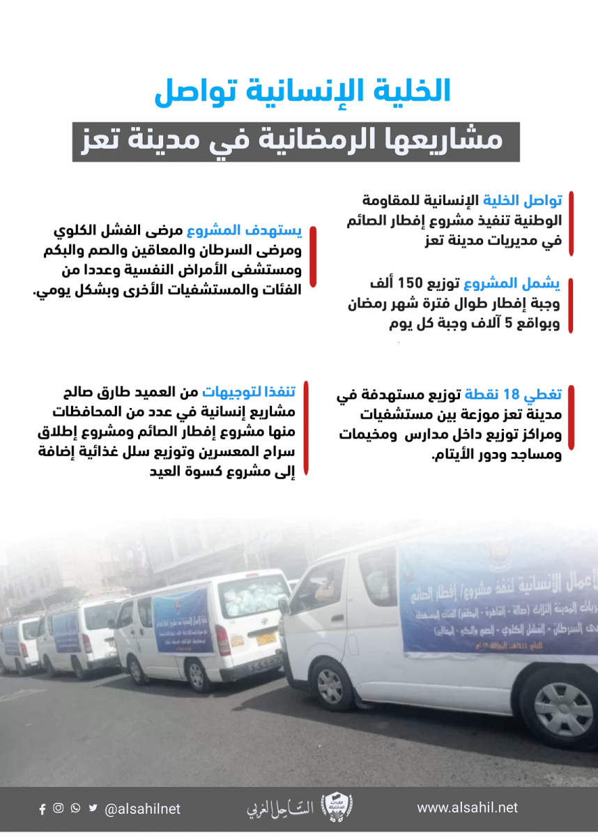 دعم المحتاجين في تعز، برنامج يومي للخلية للانسانية.