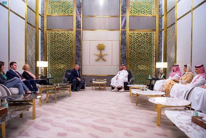 كما حضر اللقاء الأمير خالد بن سلمان وزير الدفاع السعودي، والأميرة ريما بنت بندر سفيرة المملكة العربية السعودية في الولايات المتحدة، والامير فيصل بن فرحان وزيرا للخارجية، ومساعد العيبان وزير دولة وعضو مجلس الوزراء ومستشار الامن القومي.