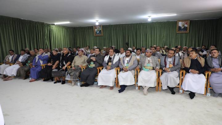 بن حبتور وجماعة العمال الآخرين عهدة مشرفي الحوثي وقناديل الطيرمانات حشروا في صالة ضيقة تعلوهم فوق رؤوسهم صورتان (للمشاط وسلفه الصماد) علقتا بعناية وقصدية واضحة لتظهرا في المشهد المتلفز - المصور، وهذه بحد ذاتها إفادة مجملة ومفصلة!