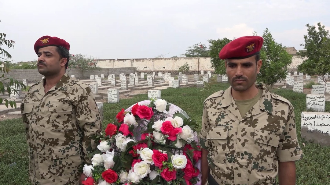 المخا.. رئيس عمليات المقاومة الوطنية يضع إكليلاً من الزهور بفردوس شهداء حراس الجمهورية
