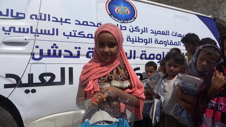 كسوة العيد للأطفال وأبناء الشهداء بالوازعية عبر "إنسانية" المقاومة الوطنية (فيديو)