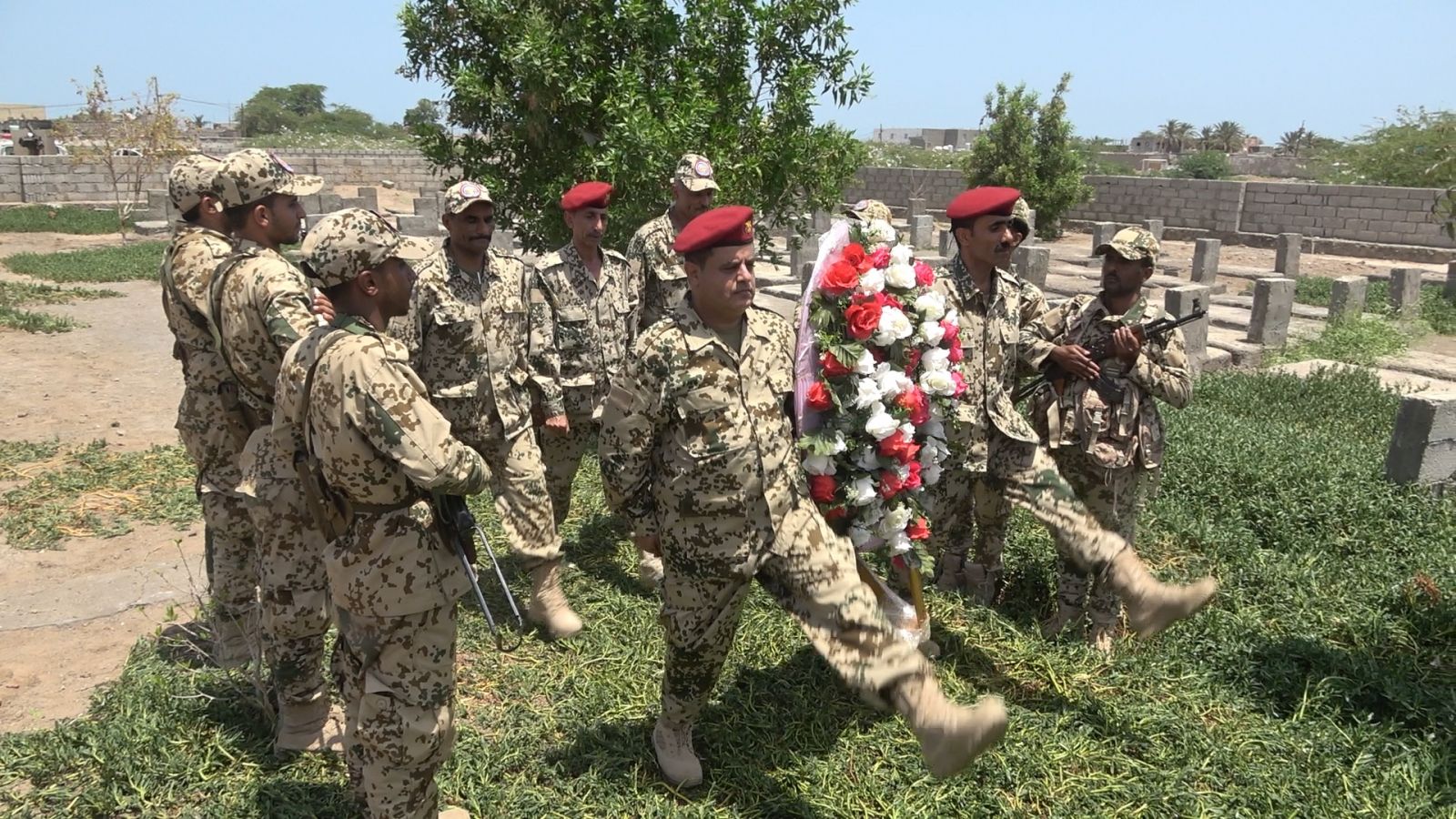 زار وفدٌ من قيادات وضباط المقاومة الوطنية، صباح اليوم الخميس 13 مايو 2021، فردوس شهداء حراس الجمهورية بمدينة المخا في الساحل الغربي حيثُ وضع إكليلاً من الزهور في مقام الشهداء، وقرأ الفاتحة لأرواحهم الطاهرة، بمناسبة عيد الفطر المبارك وإيمانًا بمسيرة الشهداء والنضال والعطاء.